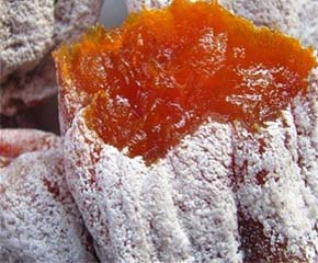 因为柿子的保鲜期比较短。所以其他地区的朋友很多都只能吃到干的柿子,而普通的柿子晾晒过程如果没有把控好,柿饼就会很干而且很硬,吃起来涩涩的。但是富平的吊柿饼,每一颗果肉都是橙黄透亮的。像流沙包一样,咬一口就感觉溏心会流出来。