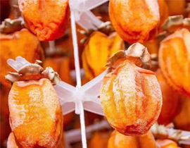 富平柿饼上面的霜是从柿子水分当中蒸发出的葡萄糖和果糖的凝结物,柿饼糖分遇冷会慢慢在表面形成一层白霜;它还有一个名字叫做“柿霜”是一种中药有润肺止咳的功效。